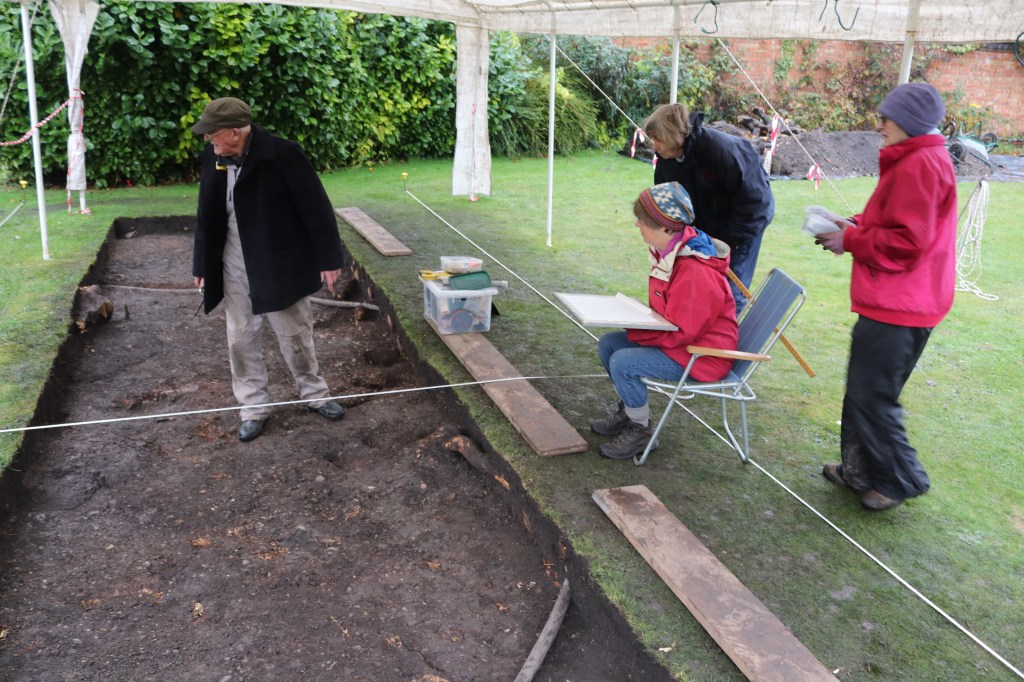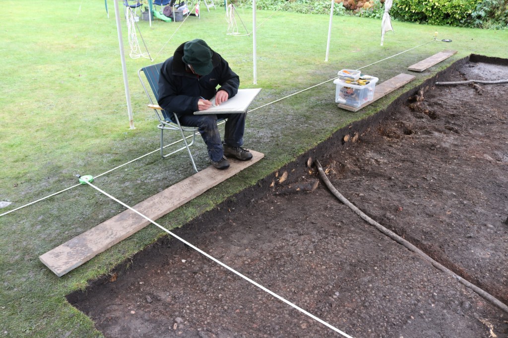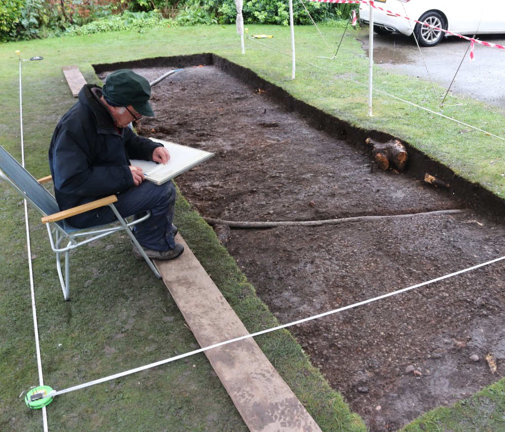 And the rain came down, and down, and…Still what’s a bit of weather to SCAG members! We drew a plan of the top layer under the expert, and patient guidance, of David, while Steve takes the photos and sorts CBM with Sue. Now that’s what you call a day out!