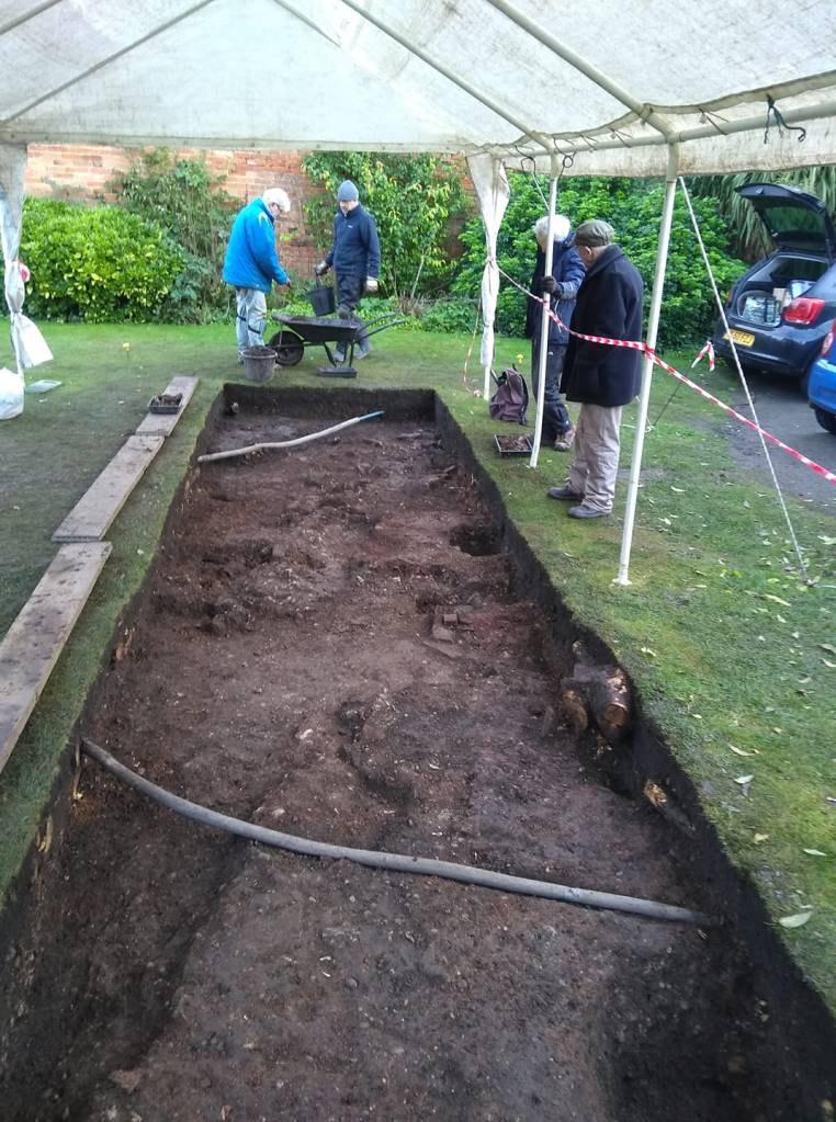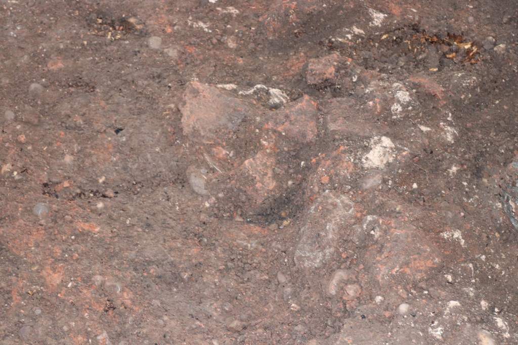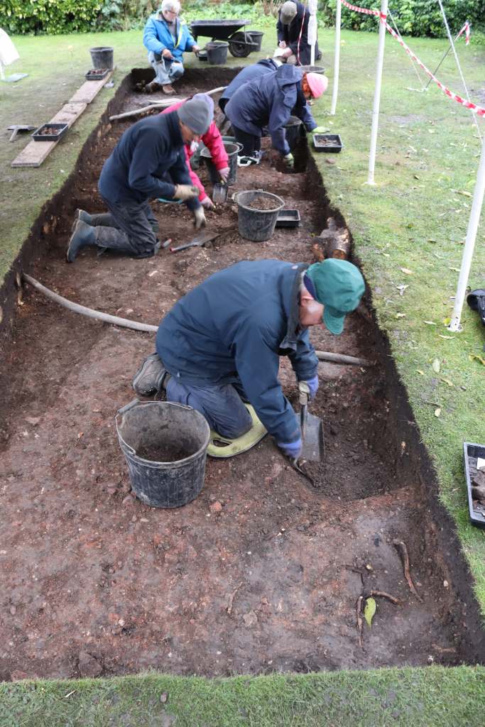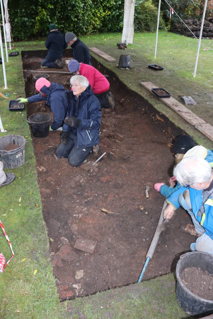 The team worked hard today, despite the raw wind and occasional shower. Brick and tile infill being revealed, with alot of lime mortar/plaster as well, looks at first sight like a dump of old building material. We shall see!