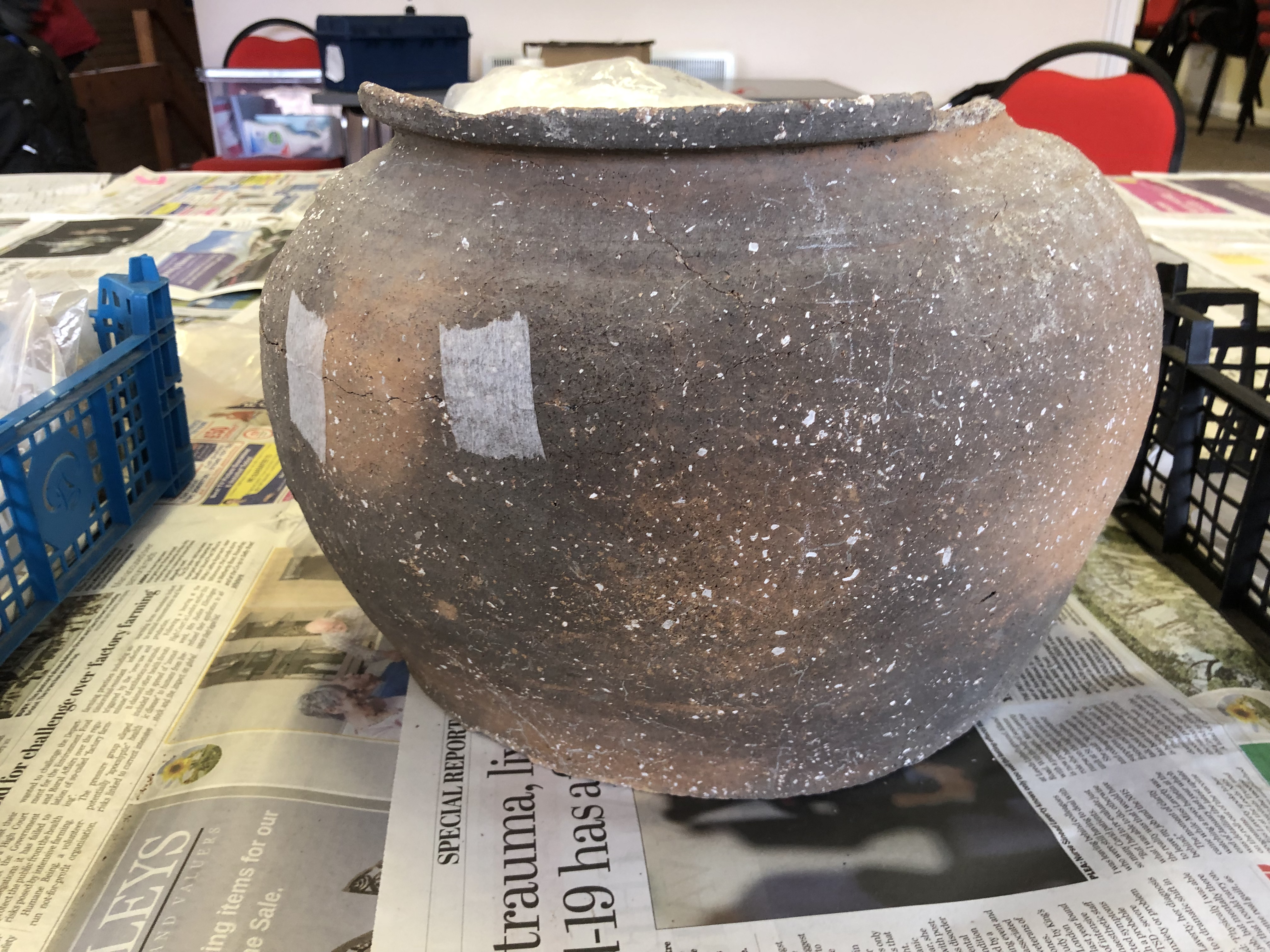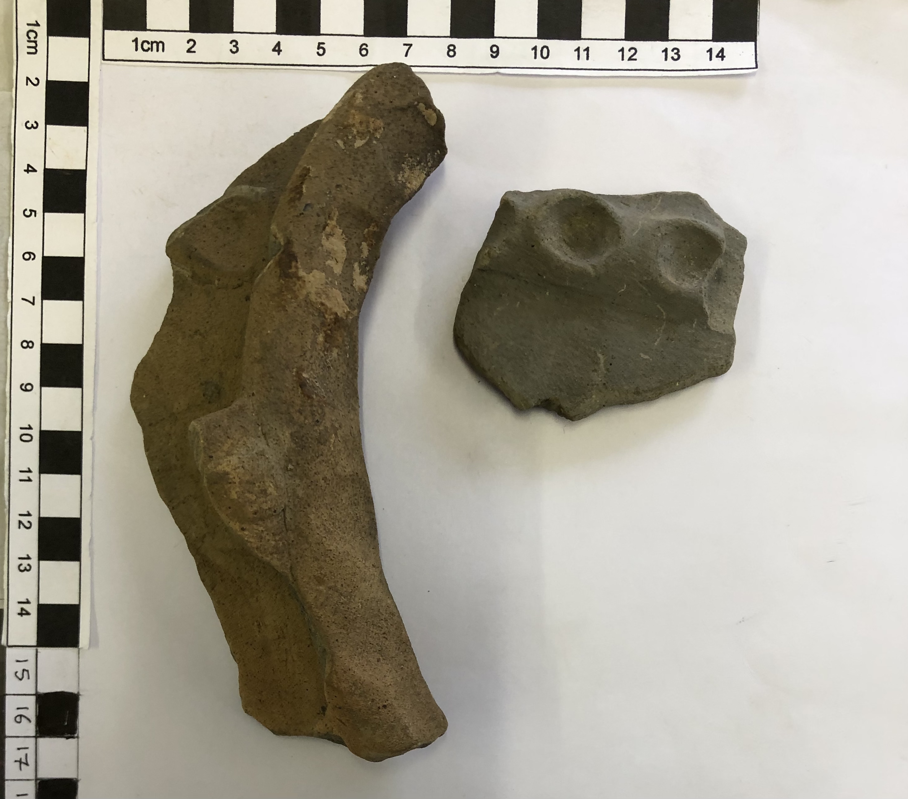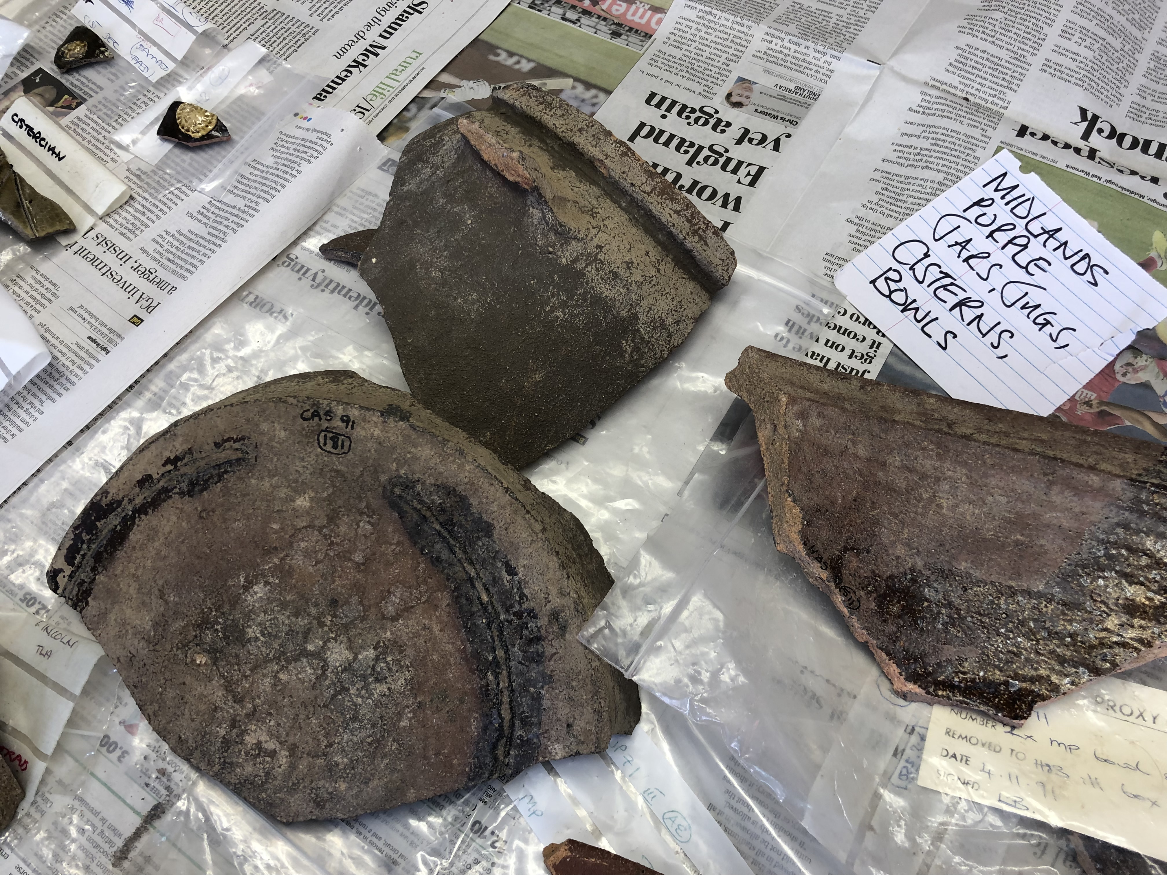 A small group of us have been working with archaeological ceramics expert Jane Young to record and identify the Medieval fabrics we have been finding. We visited Jane’s workshop recently and saw some wonderful finds. A few examples belwo include Toynton Ware (spindle whorl) Potterhanworth jar, Bourne Ware, Midlands Purple, and on the top left Thetford ware from L9th – mid 12th.
