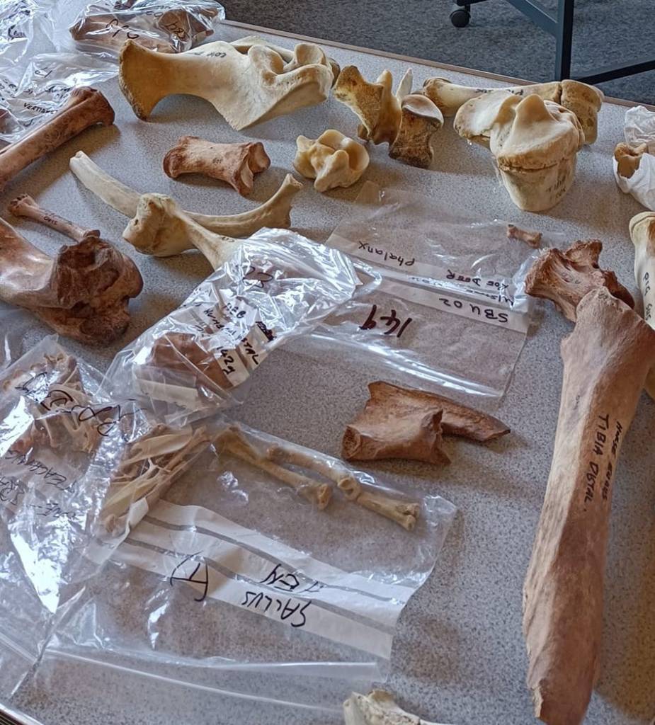 Having processed over 2,000 pottery sherds recently, and with still more to ID we moved onto the large collection of bones from recent sites. Here is some of our teaching set that we use, along with the reference books, to catalogue them all.