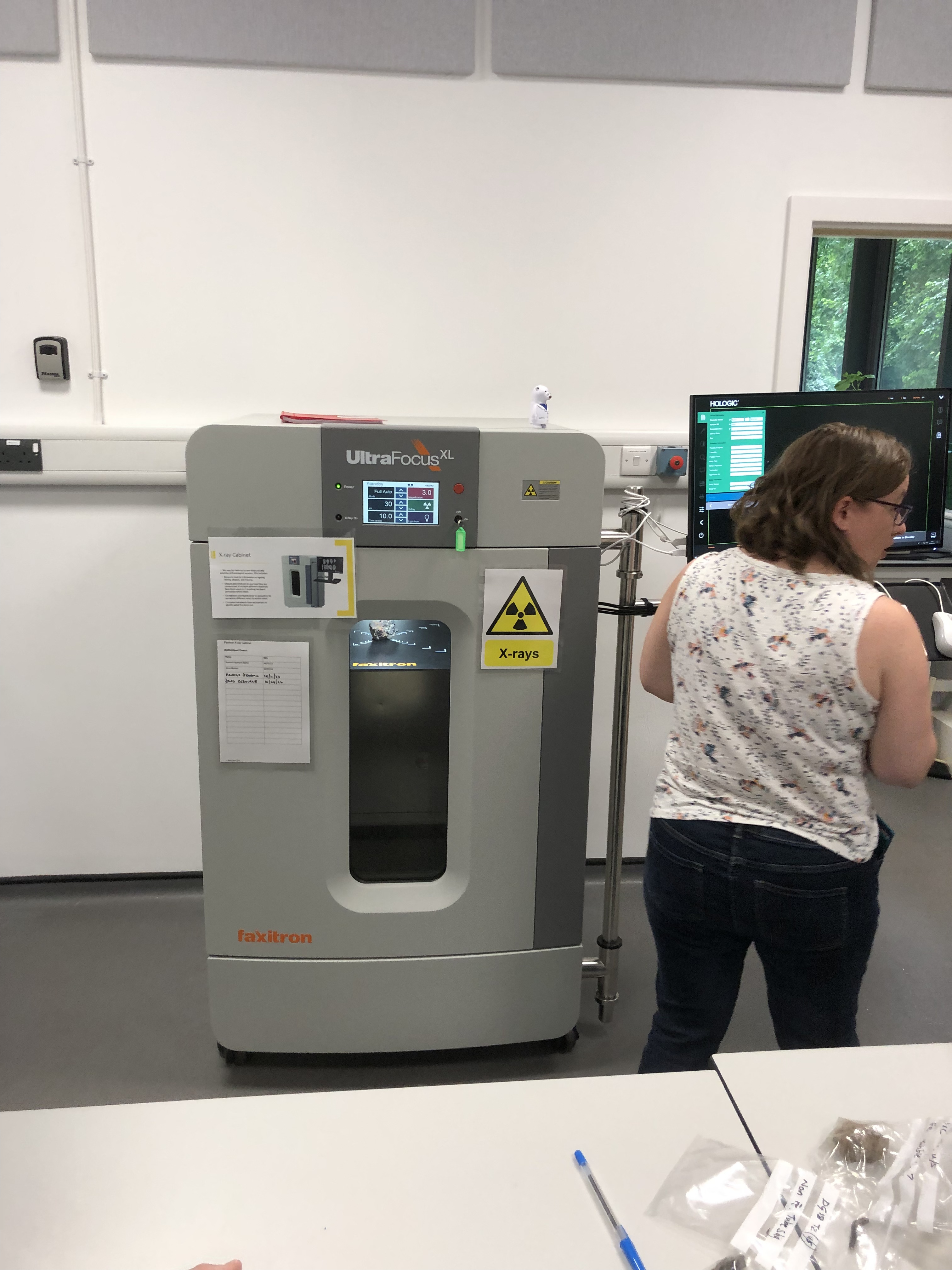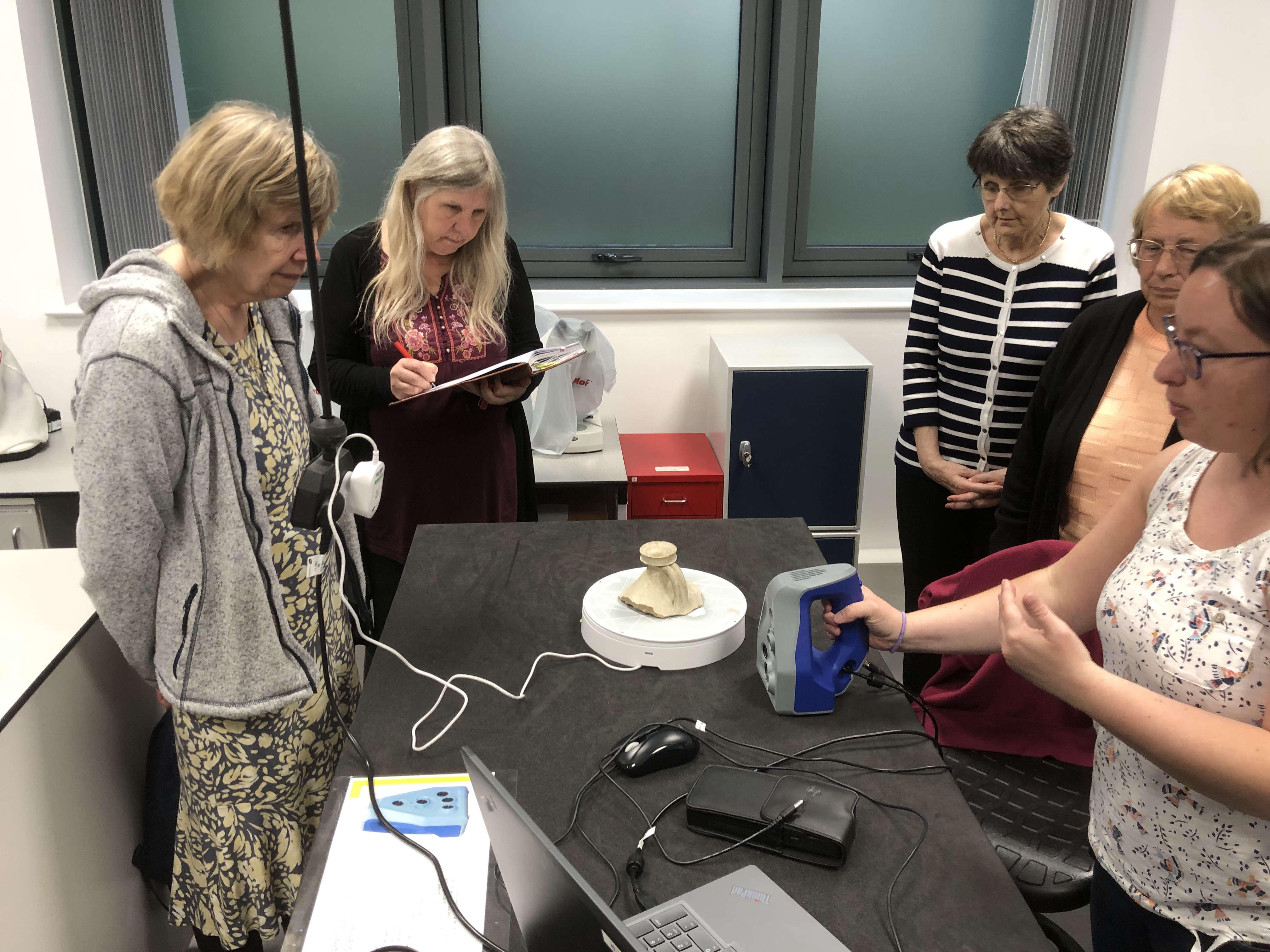The department have some new facilities and our Vice-President Professor Will Bowden kindly hosted a visit for us. 14 SCAG members enjoyed a really interesting visit to see the latest equipment. The future of archaeology lies in working together with other scientists and developing the latest techniques for artefact analysis. We got to see some of our samples given X-ray and XRF analysis. We also heard about strontium and oxygen isotope analysis on bones and saw the potential in 3D digitising of artefacts. Our thanks to Susie the lab manager for her expertise and time.